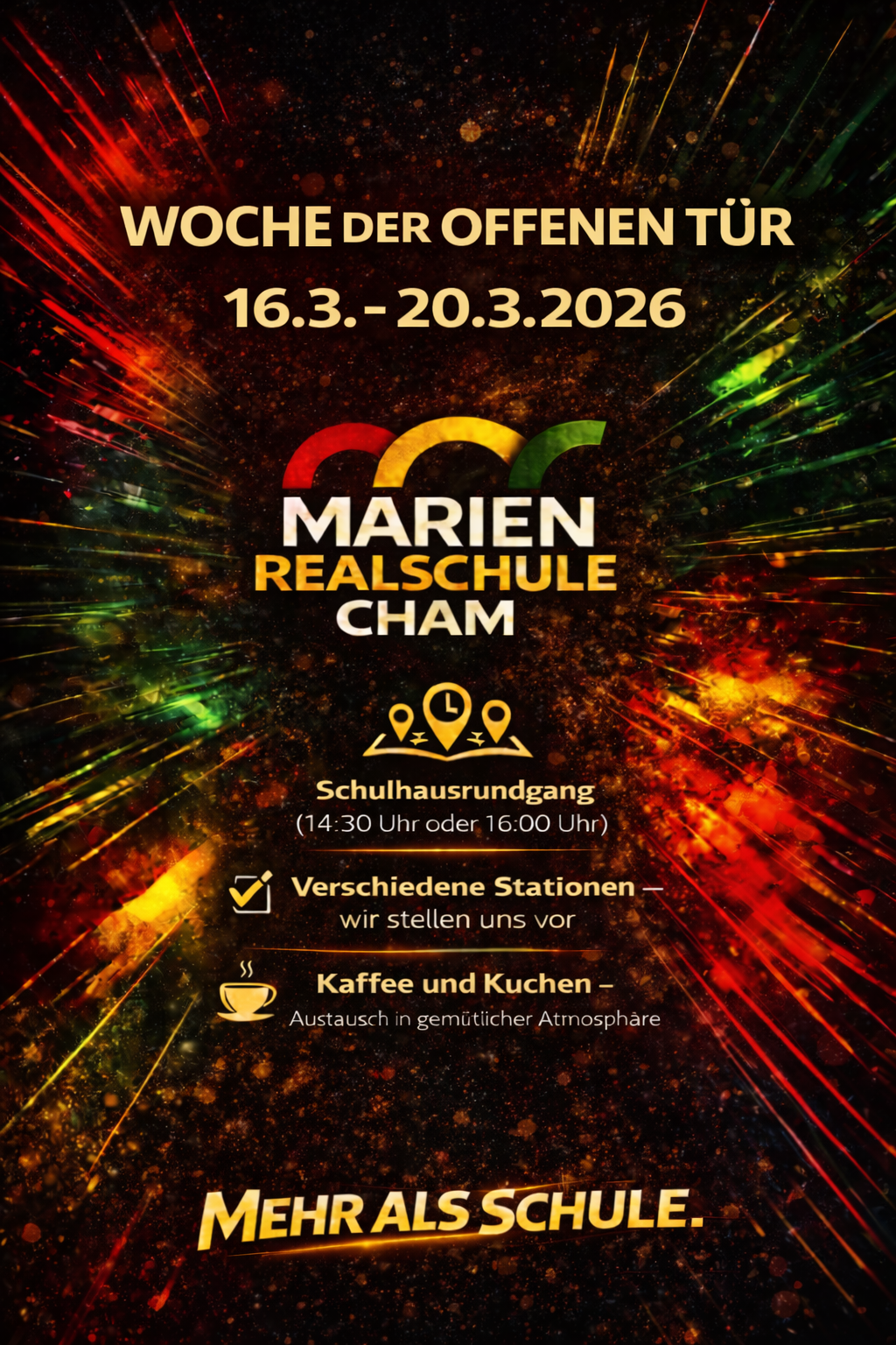 Schulhausführungen (tägl. jeweils um 14.30 u. 16.00 Uhr, Anmeldung im Sekretariat, Tel. 09971 8436720)