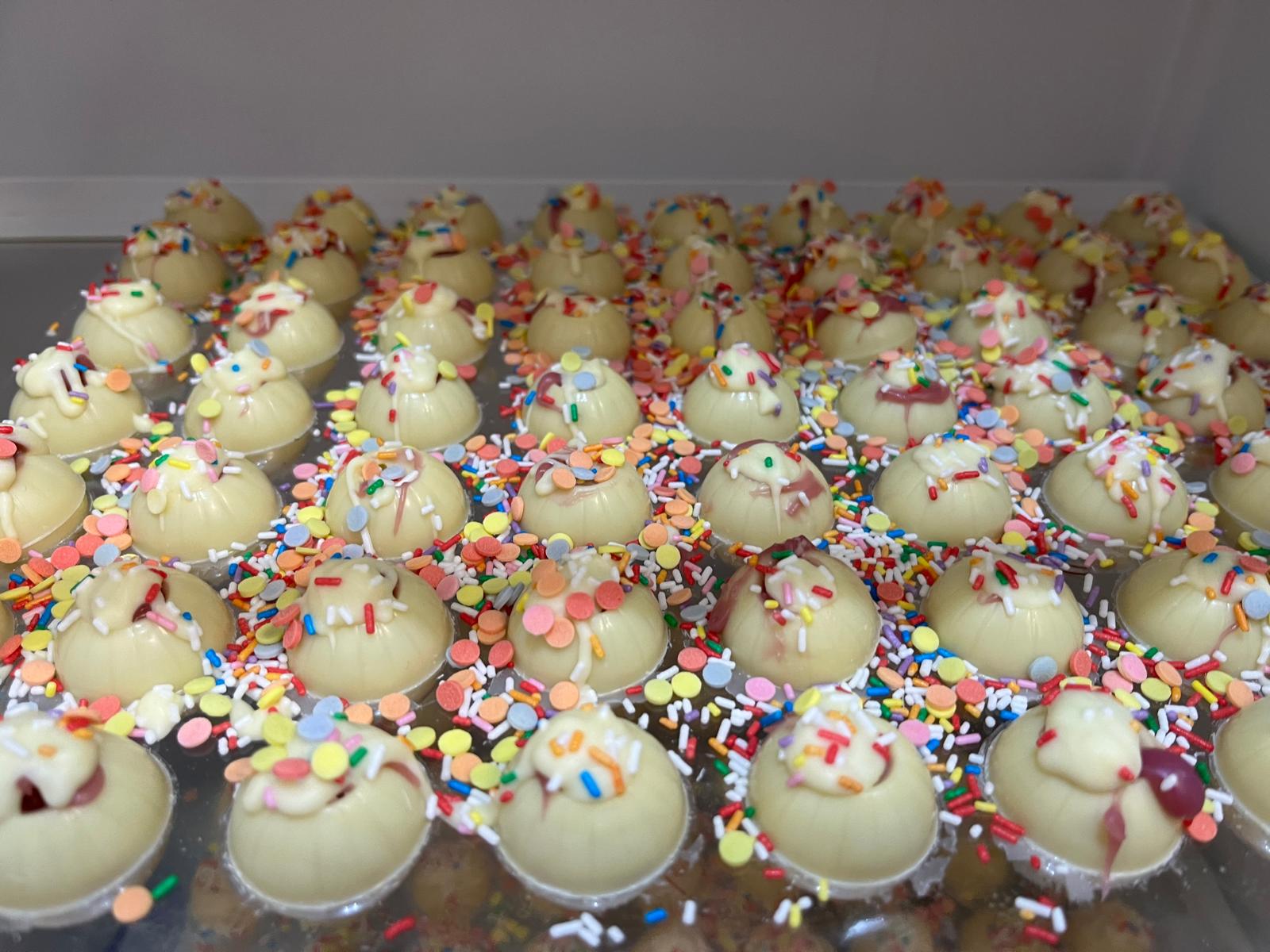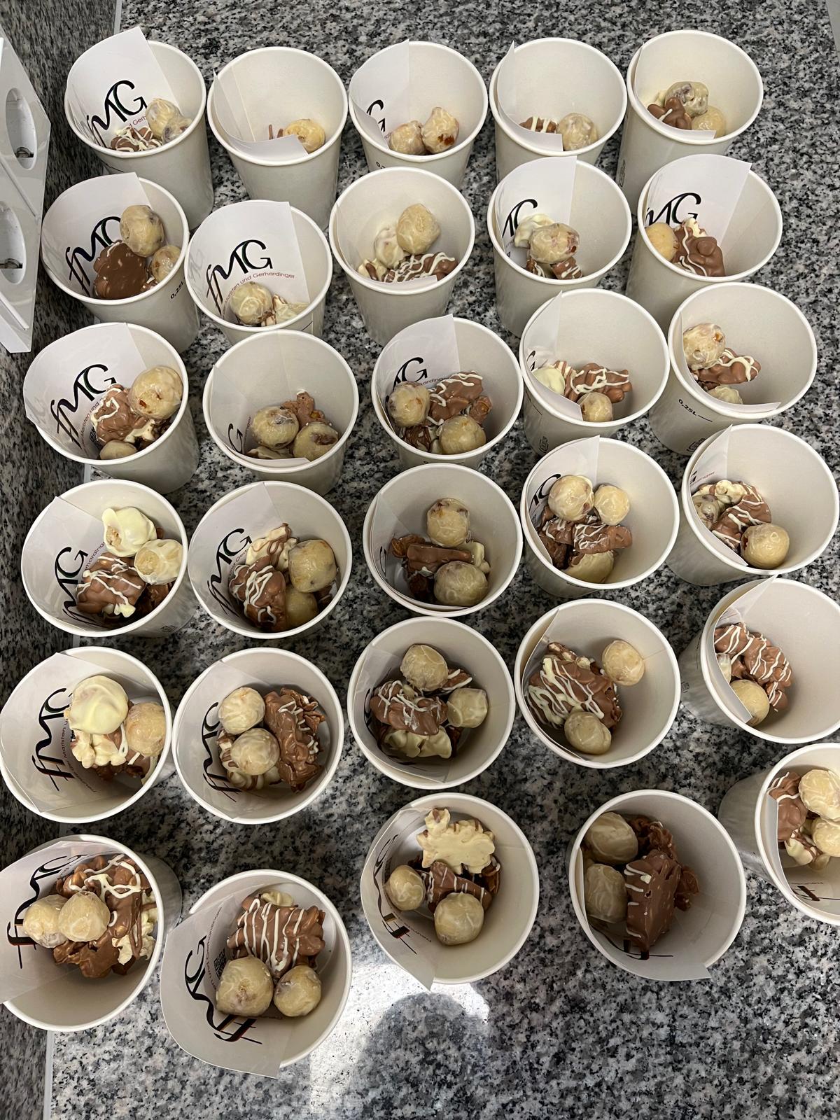 Zum krönenden Abschluss durfte jede und jeder einen prall gefüllten Becher mit den selbstgemachten Pralinen mit nach Hause nehmen – ein süßes Souvenir eines rundum gelungenen Nachmittags.
