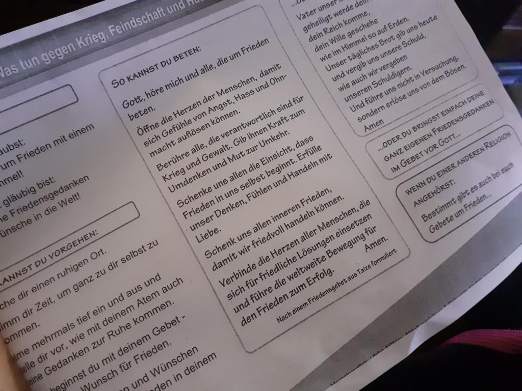 Ein Friedensgebet aus Taizé, einem ökumenischen Kloster in Frankreich, bildete den Abschluss für die evangelischen und katholischen Schülerinnen.
