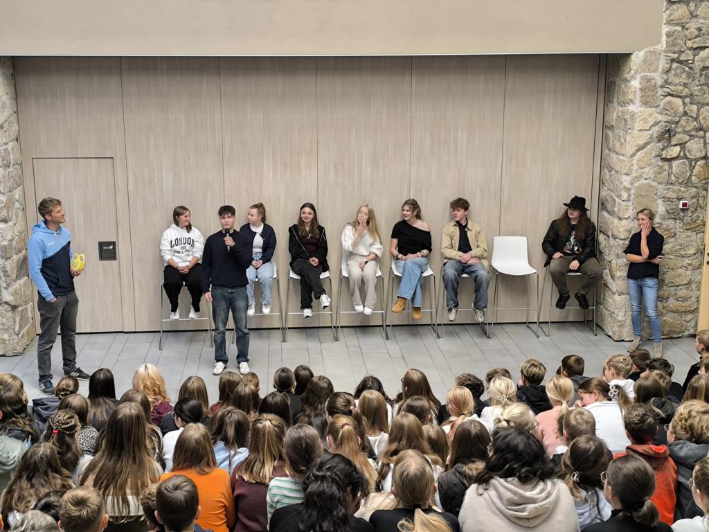 Am Montag fand an unserer Schule die Wahl des neuen Schülersprechers statt. Acht engagierte Kandidatinnen und Kandidaten stellten sich zunächst im Morgenkreis der gesamten Schülerschaft vor. In kurzen, teils humorvollen Reden versuchten sie, mit ihren Ideen und Zielen für das kommende Schuljahr zu überzeugen.
