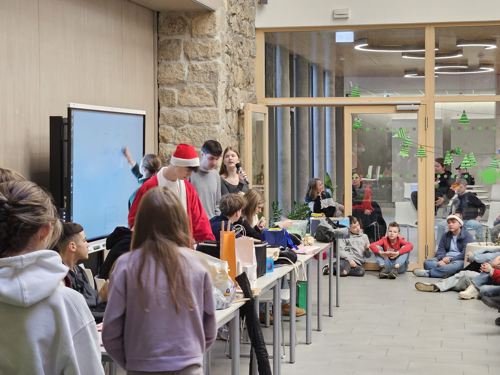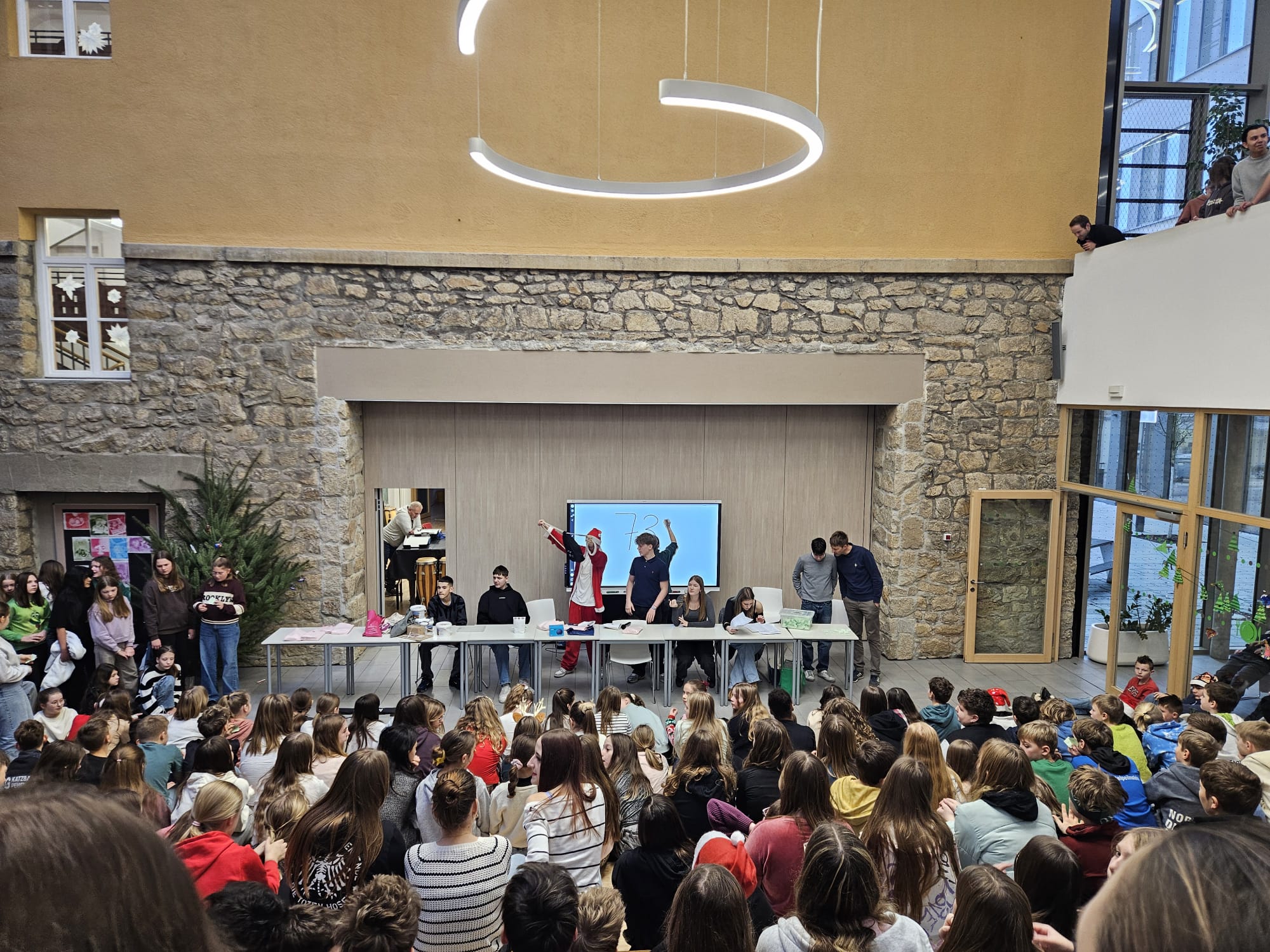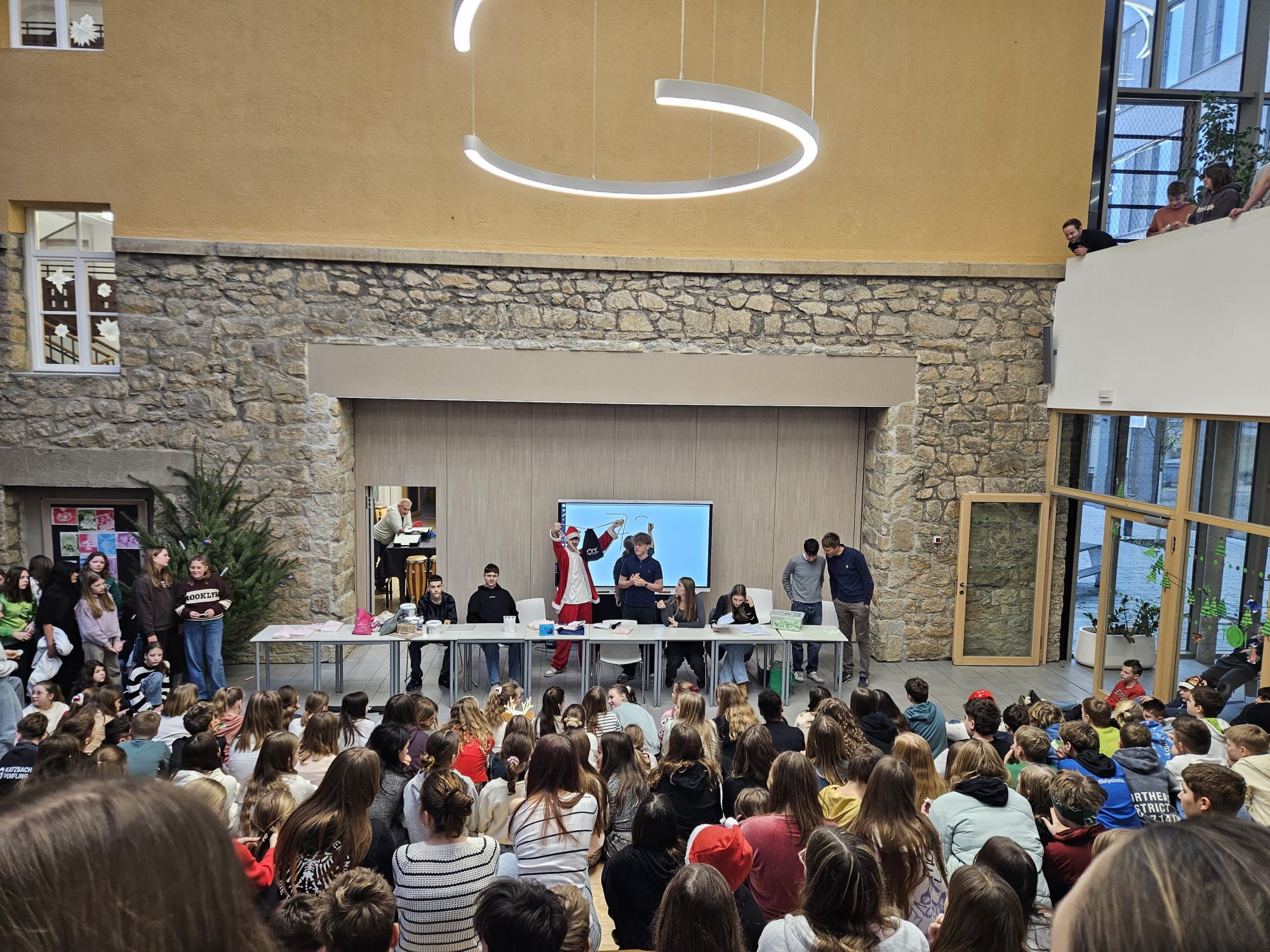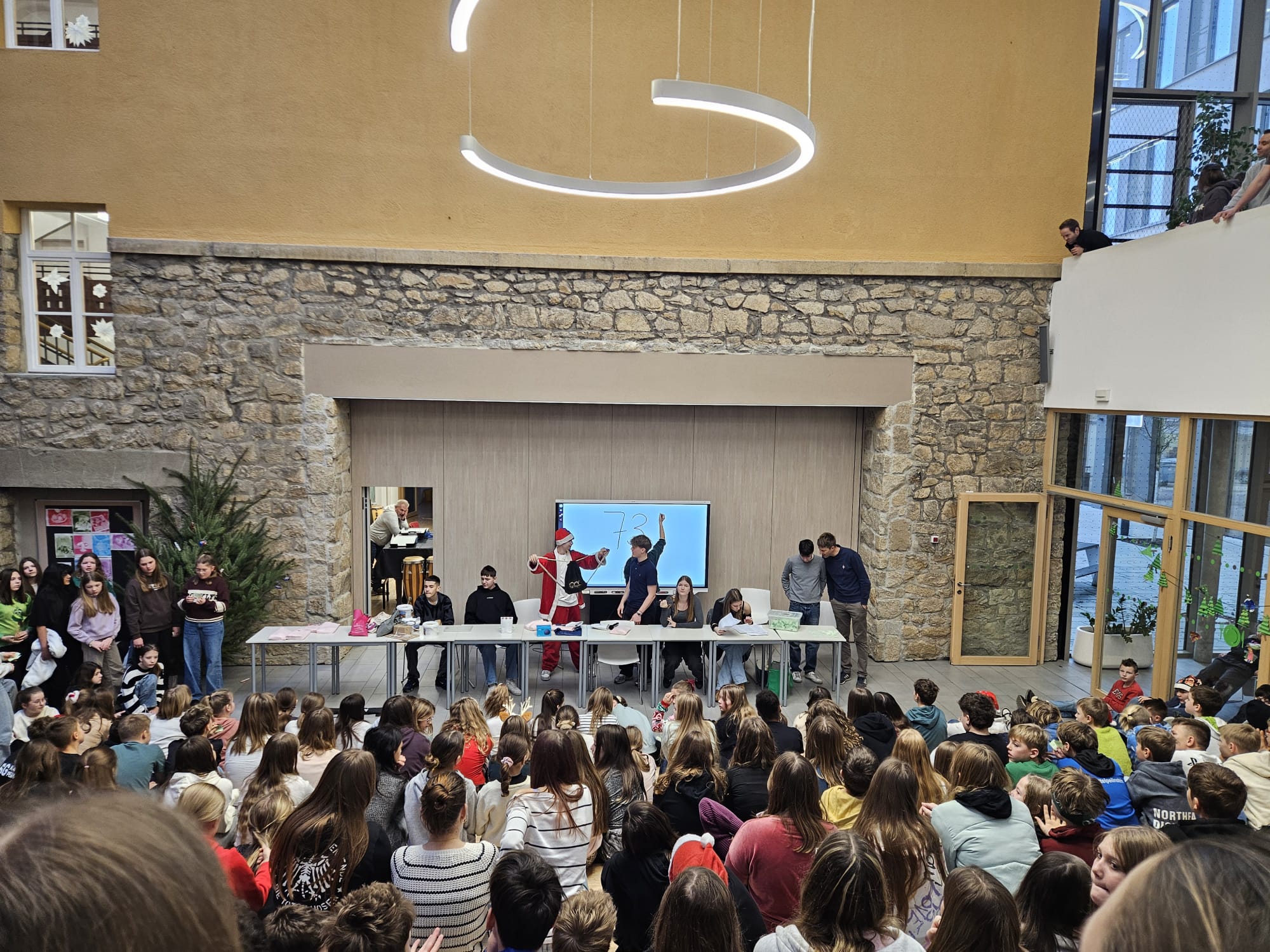 Am letzten Schultag vor den Weihnachtsferien erlebten alle Schülerinnen und Schüler der Marienrealschule eine schöne Atmosphäre in der Aula. Die Veranstaltung stand ganz im Zeichen von Gemeinschaft und froher Vorfreude auf die Feiertage. Organisiert wurde sie mit viel Herzblut von der SMV, die die Planung, Durchführung und Moderation souverän übernahm.