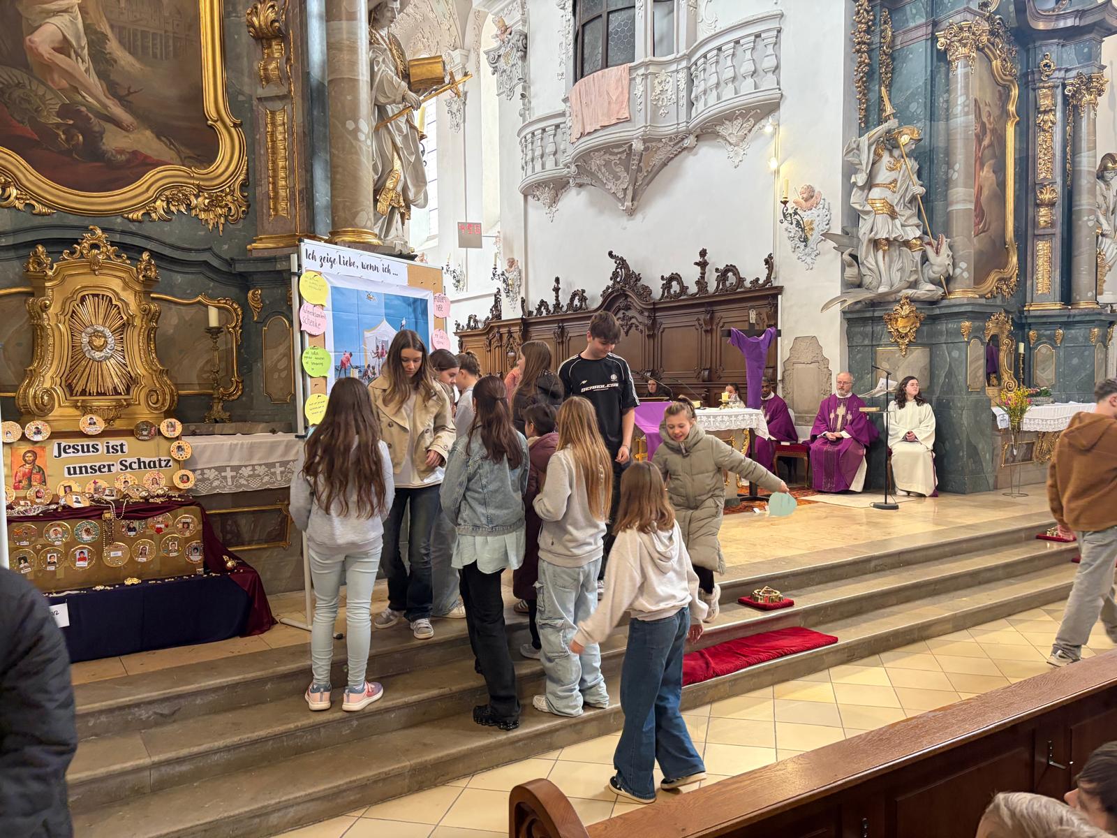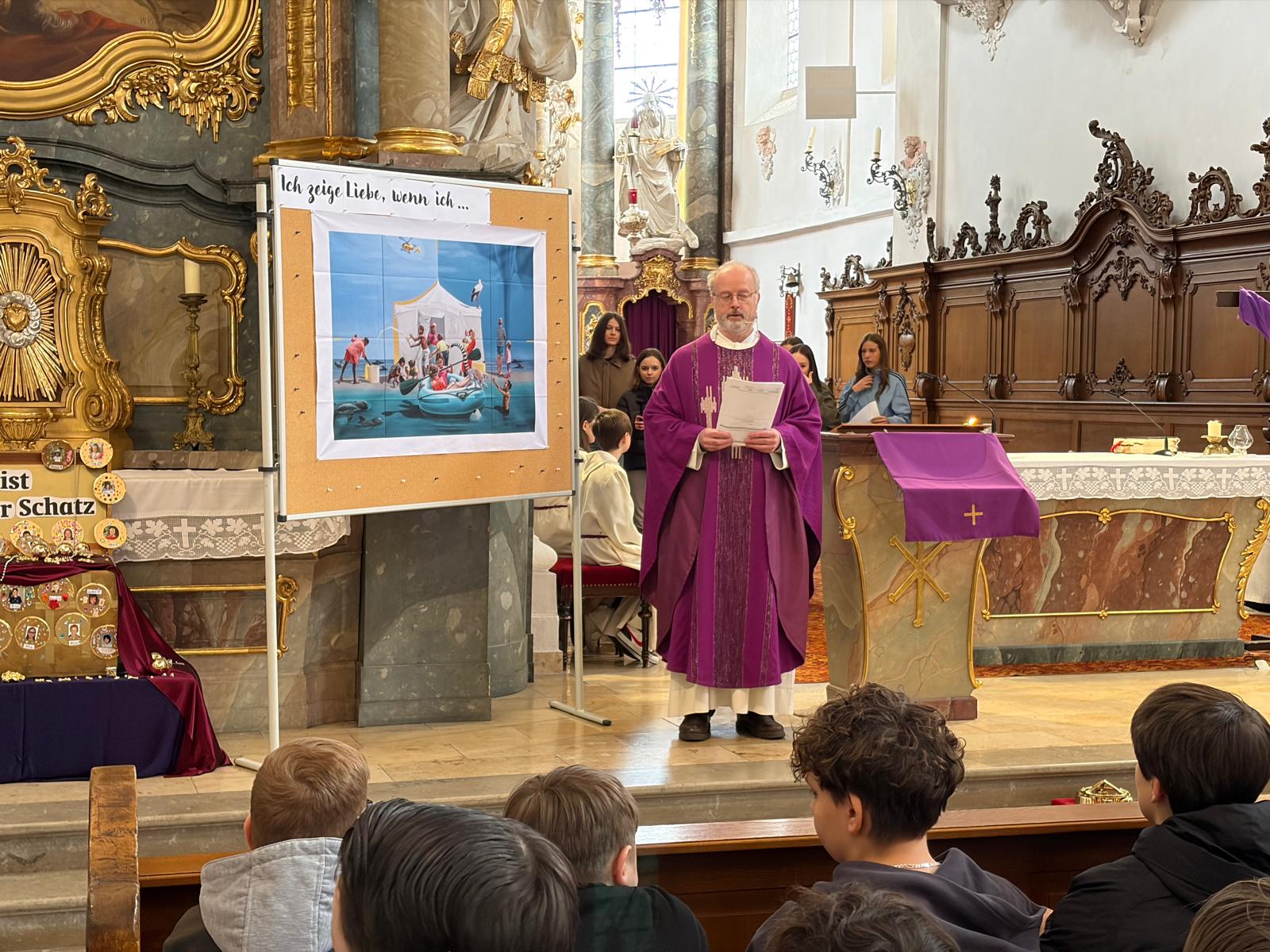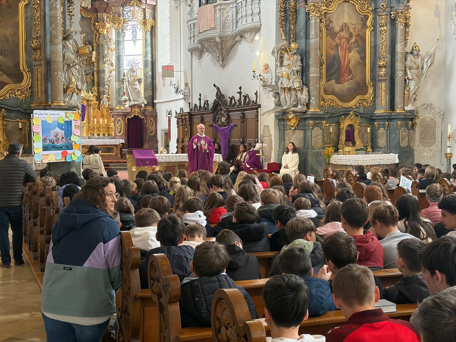 Zelebriert wurde der Gottesdienst von Pfarrer Pater Jens Bartsch, der in seiner Predigt betonte, wie wichtig kleine Gesten der Freundschaft und Hilfsbereitschaft für ein gutes Miteinander sind. So entstand eine lebendige und berührende Feier, die den Schülerinnen und Schülern noch lange in Erinnerung bleiben wird.