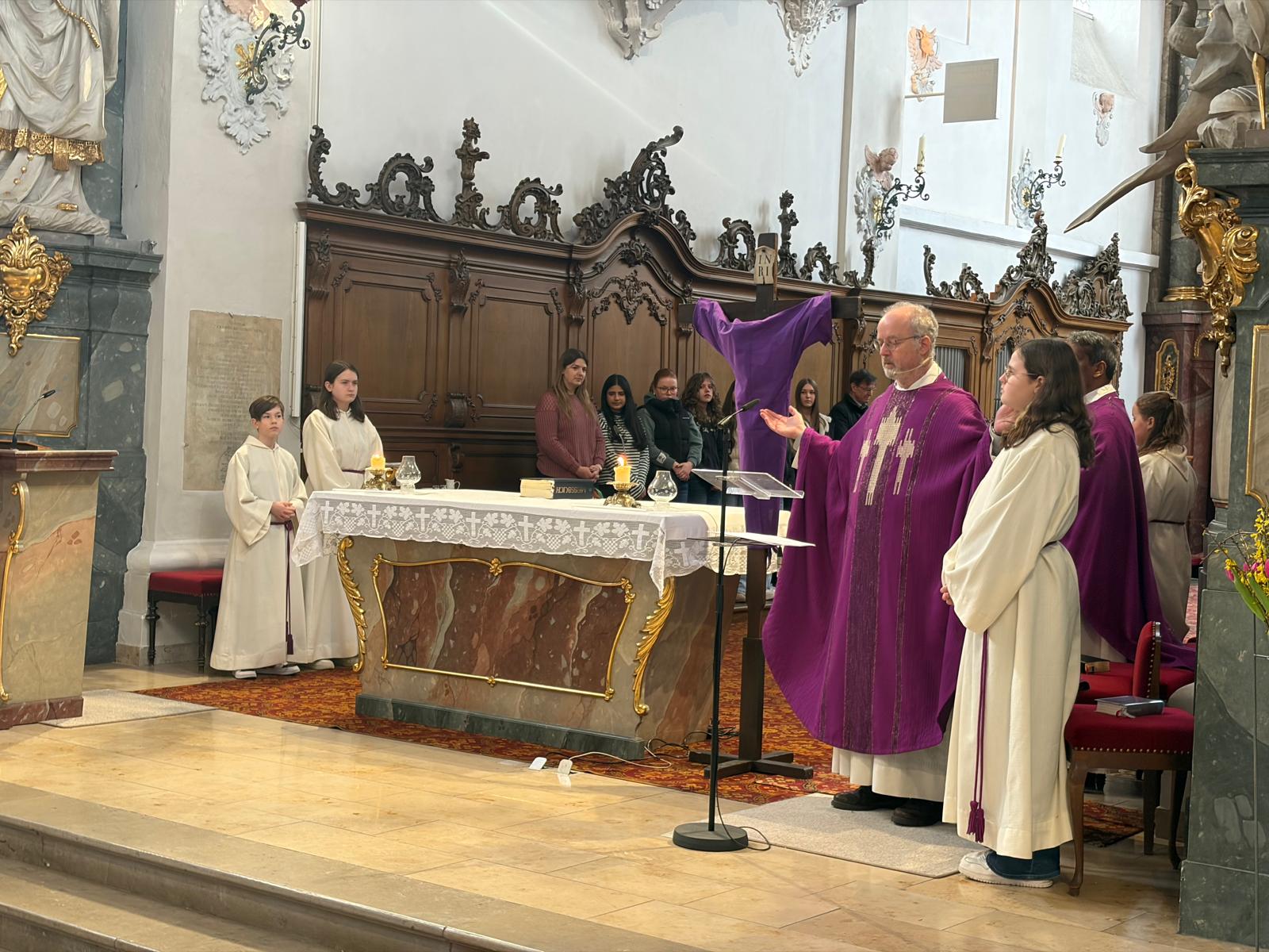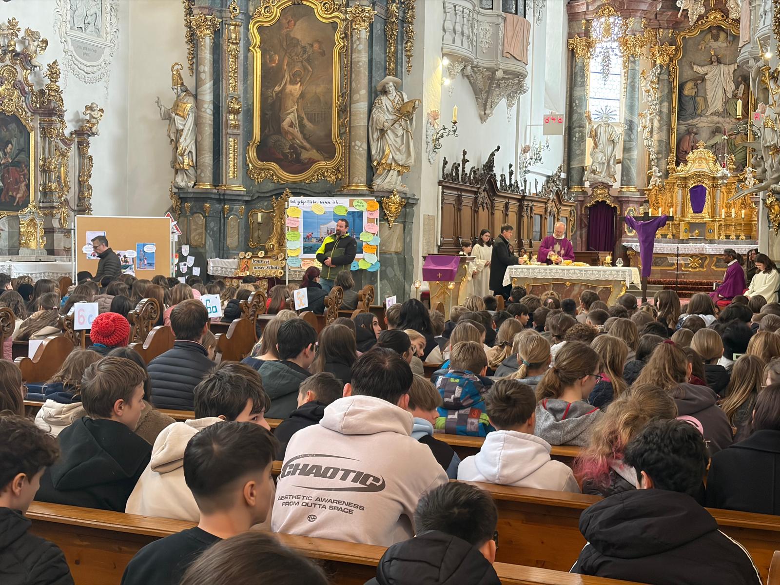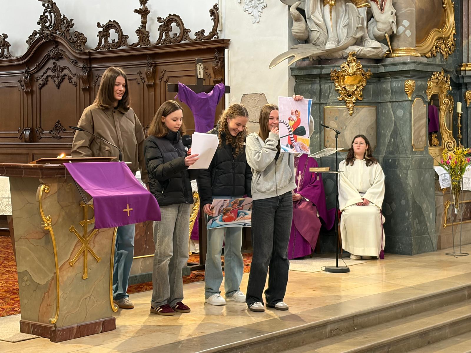 Zelebriert wurde der Gottesdienst von Pfarrer Pater Jens Bartsch, der in seiner Predigt betonte, wie wichtig kleine Gesten der Freundschaft und Hilfsbereitschaft für ein gutes Miteinander sind. So entstand eine lebendige und berührende Feier, die den Schülerinnen und Schülern noch lange in Erinnerung bleiben wird.