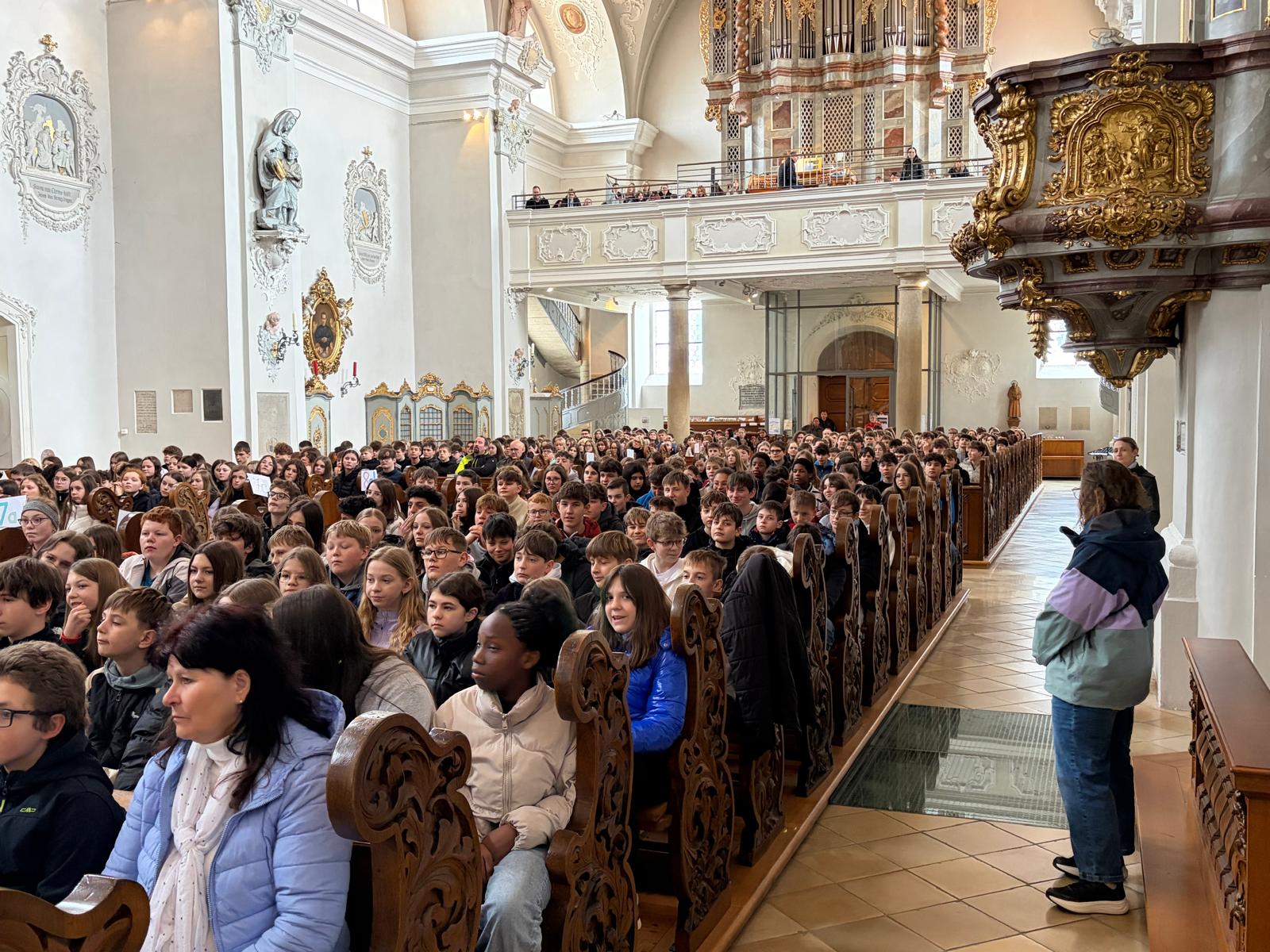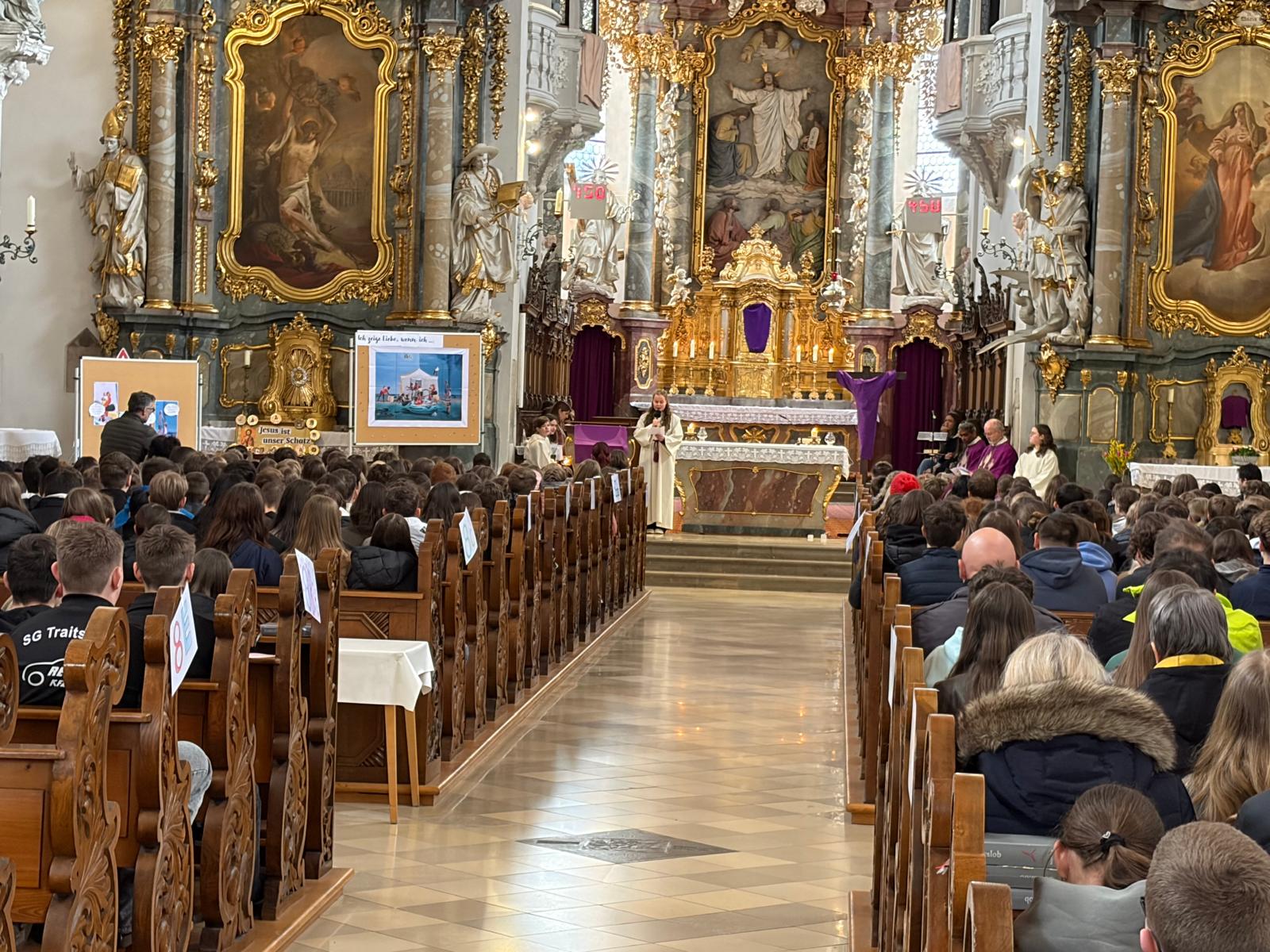 Am Donnerstagvormittag versammelten sich alle 670 Schülerinnen und Schüler der Marienrealschule Cham in der Stadtpfarrkirche St. Jakob, um gemeinsam Gottesdienst zu feiern. Unter dem Leitgedanken „Ich zeige Liebe, wenn …“ stand das Thema ganz im Zeichen des Miteinanders und der gelebten Nächstenliebe im Schulalltag.