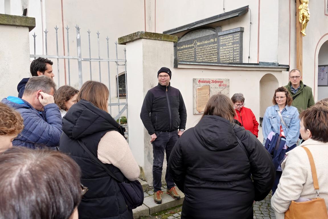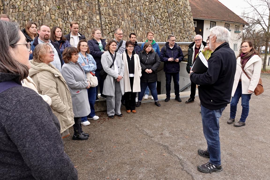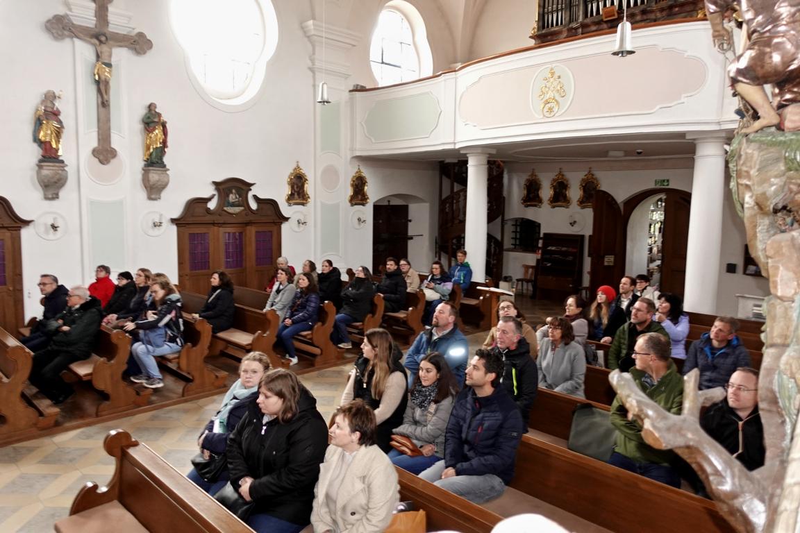 Zu einem besonderen Betriebsausflug machten sich am vergangenen Freitag die Mitarbeiterinnen und Mitarbeiter der Marienrealschule Cham auf. Mit dem Bus ging es zunächst zum Konzerthaus Blaibach, das weltweit für seine herausragende Akustik bekannt ist. Viele der Teilnehmenden hatten den außergewöhnlichen Konzertsaal bislang noch nie von innen gesehen. Der damalige Bauleiter, Herr Landgraf, führte die Gruppe durch das Gebäude und gewährte spannende Einblicke in die architektonischen Besonderheiten des Hauses. Mit zahlreichen anschaulichen Schilderungen aus der Bauzeit machte er den Gästen nachvollziehbar, wie der einzigartige akustische Charakter des Saales entstanden ist. Ein besonderes Highlight war ein spontanes Geburtstagsständchen, das die Belegschaft einem Kollegen im Konzertsaal darbrachte. Im Anschluss führte die Fahrt weiter nach Bad Kötzting. Dort empfing Pfarrer Winderl die Gruppe in der Wallfahrtskirche Weißenregen. In der beeindruckenden Atmosphäre des historischen Kirchenraums gab er einen Überblick über die Entstehungsgeschichte und die kunstvolle Ausgestaltung der Kirche. Geistliche Impulse und ein gemeinsames Gebet rundeten den Kirchenbesuch ab. Nach einem kurzen Fußweg kehrten die Teilnehmer schließlich im Gasthof Lindner ein, wo bei guter Verpflegung und angenehmen Gesprächen der gelungene Ausflug seinen Abschluss fand.