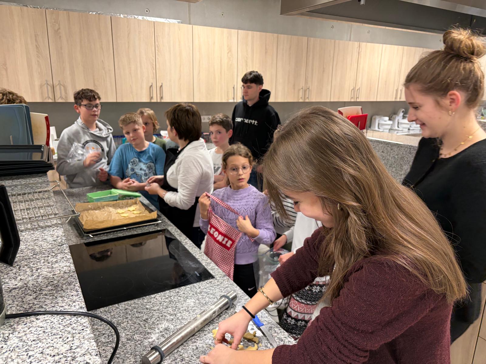 In der Vorweihnachtszeit durfte sich die Klasse 5b über eine besondere Aktion ihrer Tutoren freuen. Gemeinsam verbrachten sie einen Nachmittag in der Schulküche und backten zusammen mit EG-Lehrerin Breitkopf leckere Butterplätzchen aus Mürbteig.