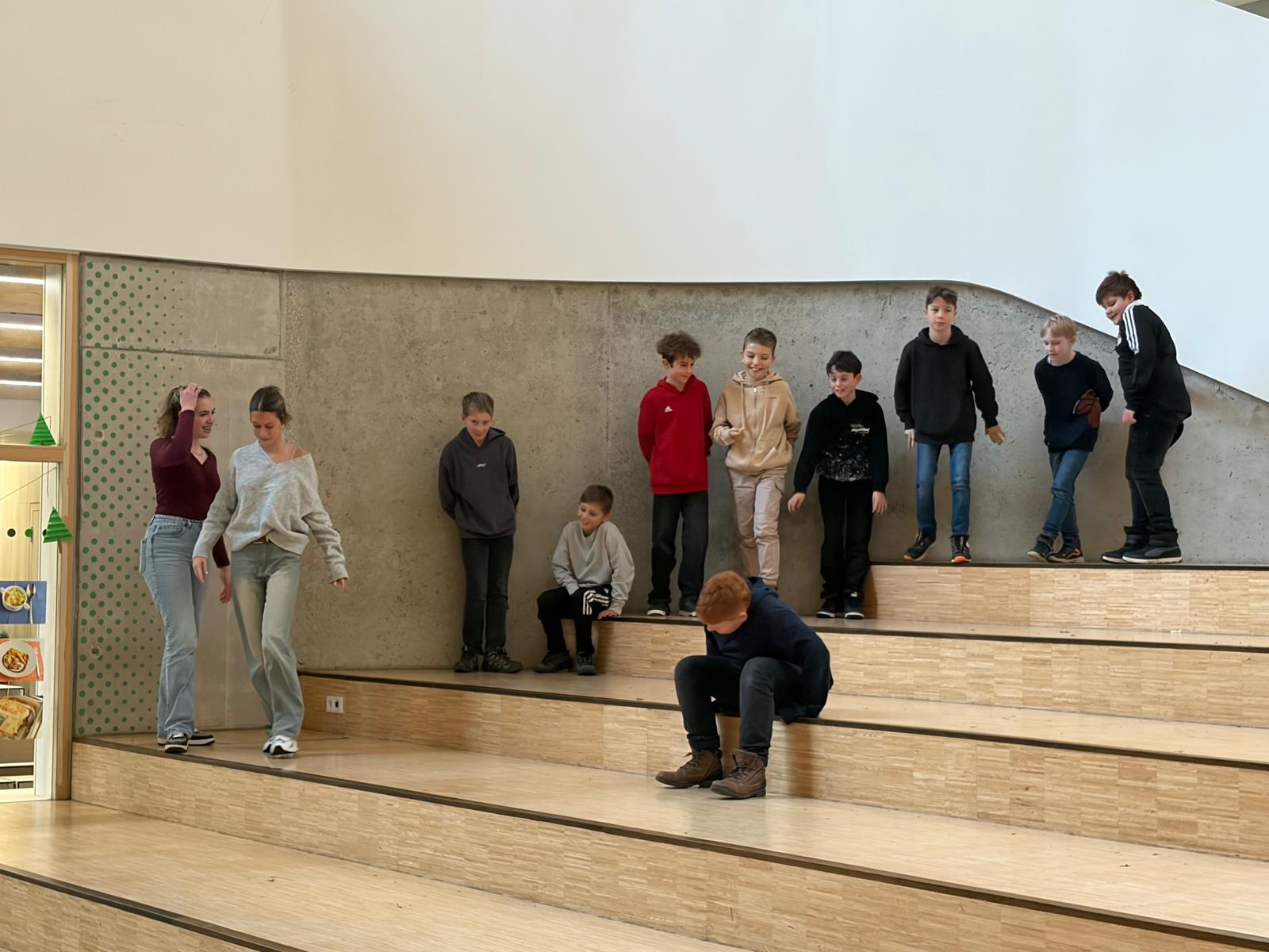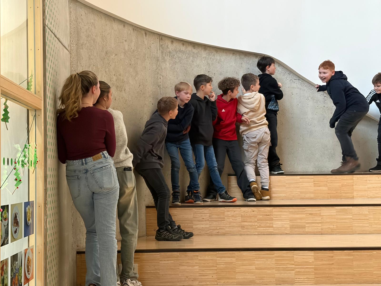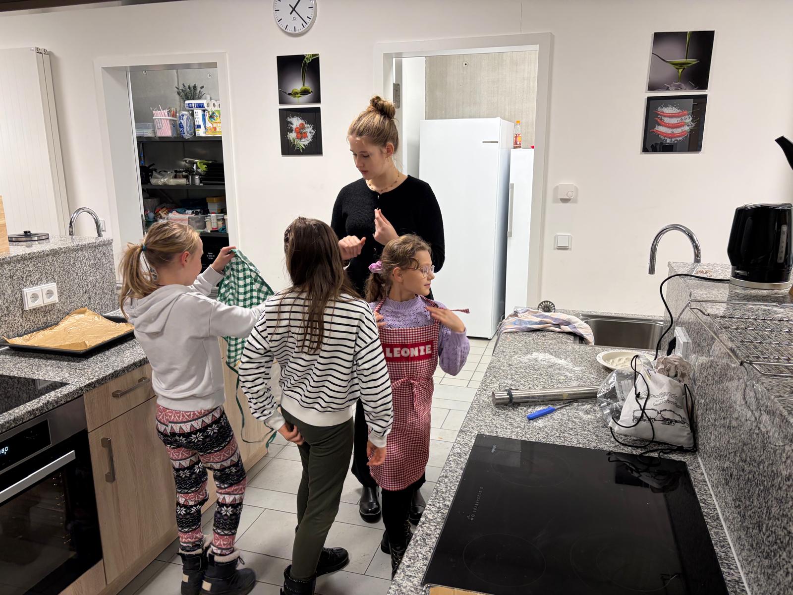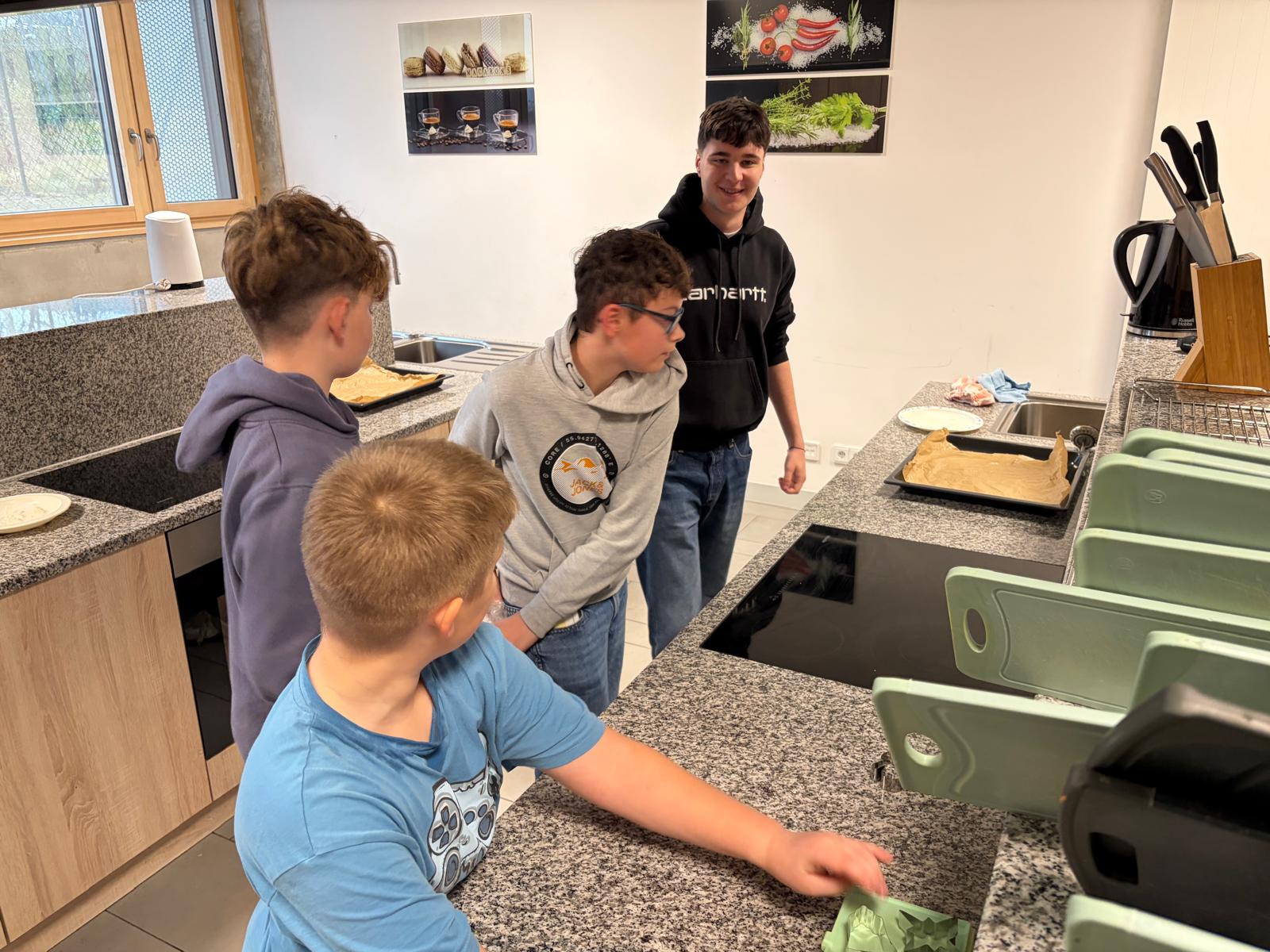 Während die eine Hälfte der Klasse in der Küche arbeitete, spielte die andere Hälfte mit den Tutoren verschiedene Gemeinschafts- und Bewegungsspiele. So hatten die Schülerinnen und Schüler zwischendurch Zeit zum Lachen, Austoben und besseren Kennenlernen. Anschließend wurde gewechselt, damit alle sowohl beim Backen als auch bei den Spielen dabei sein konnten.