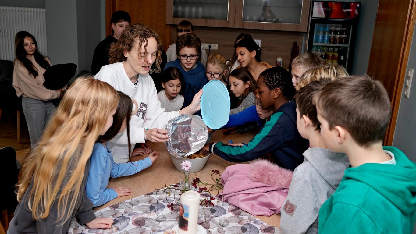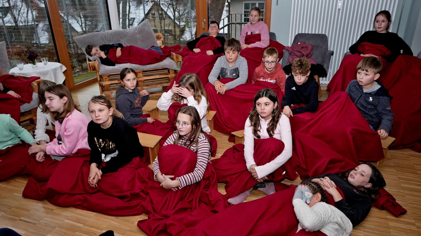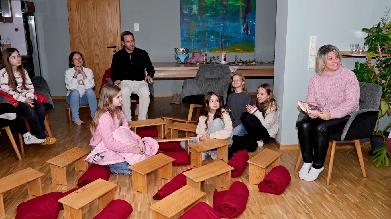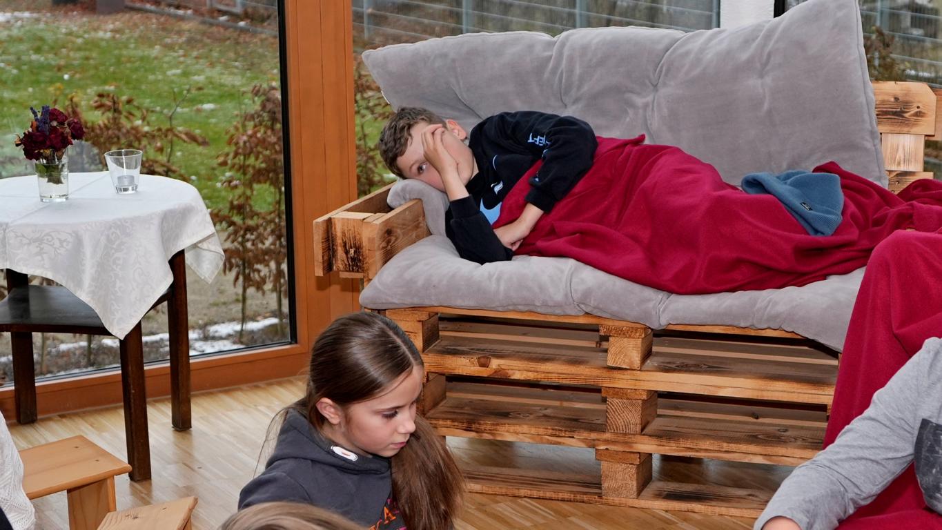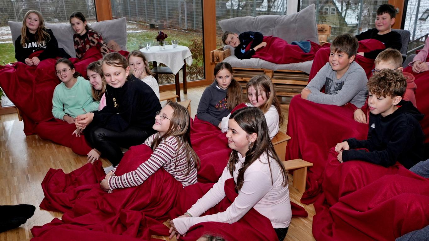Schon beim Betreten des Maristenhauses, das der Maristenorden regelmäßig großzügig für schulische Aktionen öffnet, wurde klar: Hier steckt Herzblut drin. Jürgen, Ehemann der Mit-Organisatorin Johanna Aschenbrenner, hatte den Raum liebevoll in eine gemütliche Leseoase verwandelt. Hocker, Decken und weitere gemütliche Sitzplätze machten den Fünftklässlern sofort Lust, in die Welt der Bücher abzutauchen.